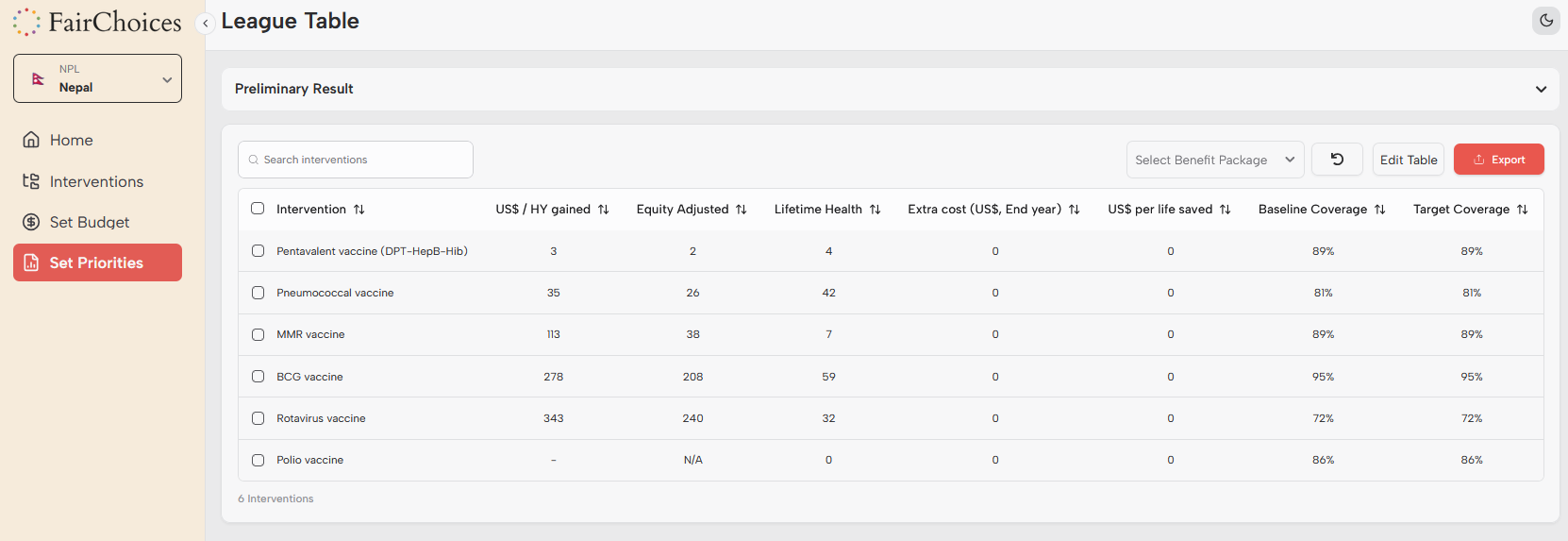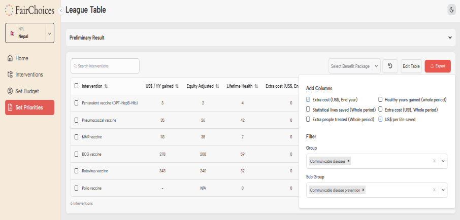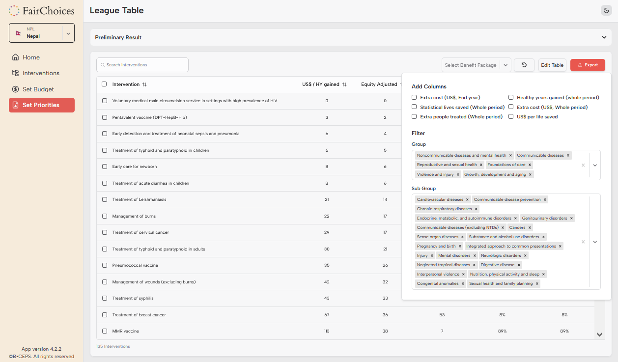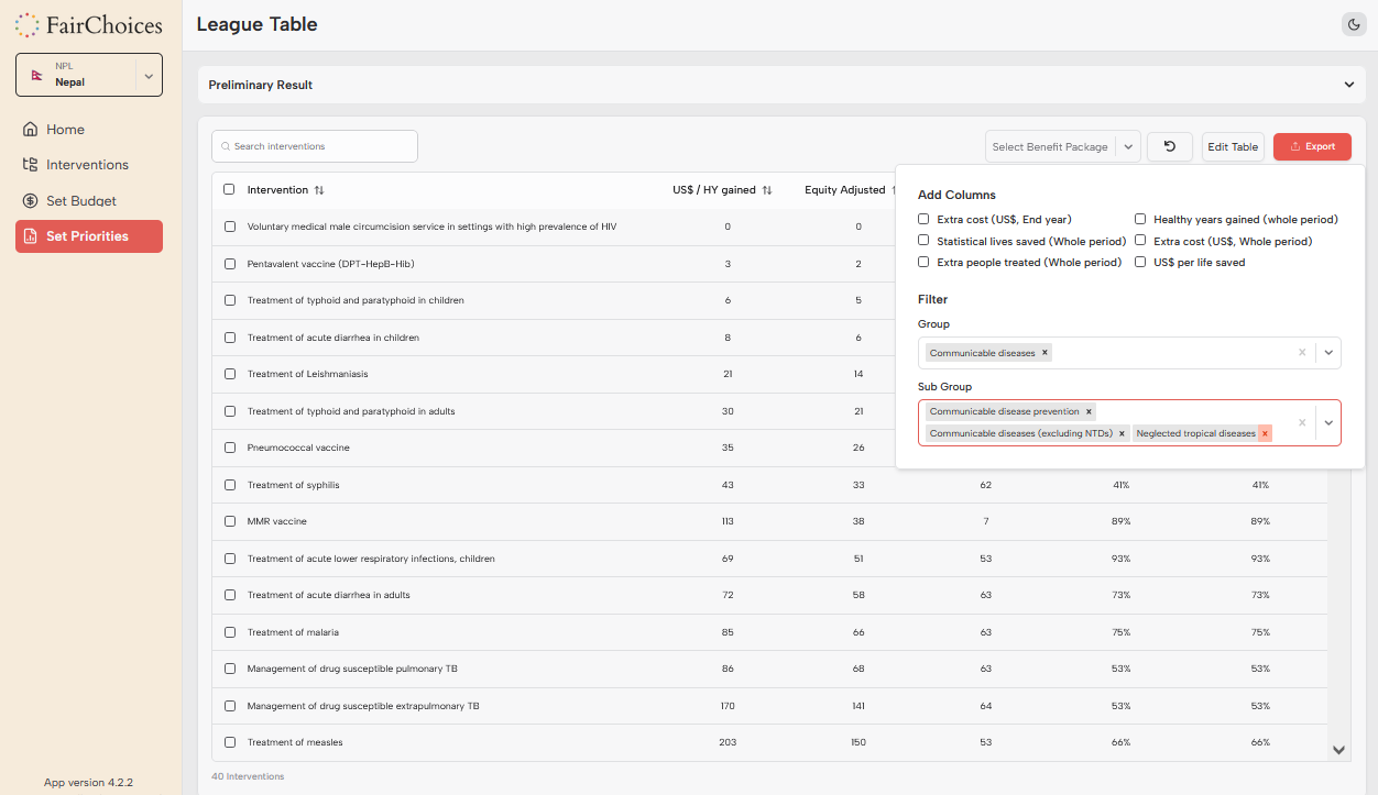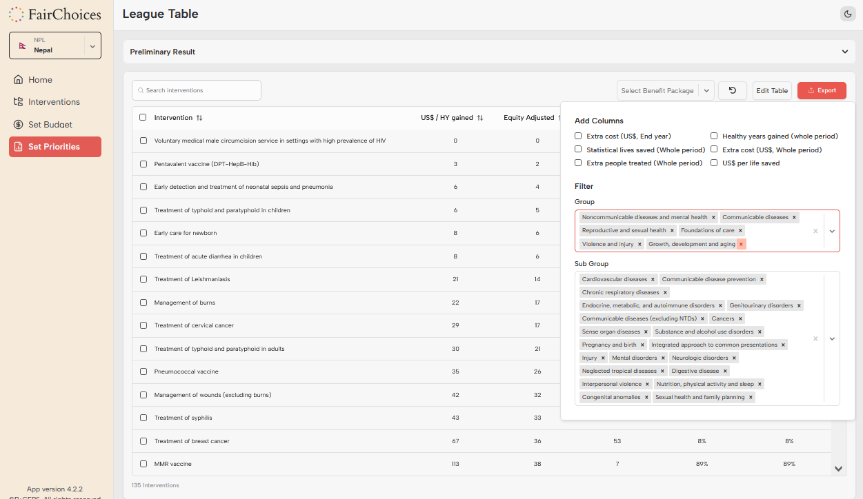 | Set Priorities | Access the League Table for priority setting and cost-effectiveness analysis |