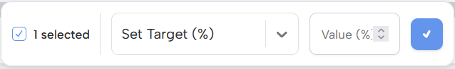 The box on the left shows the number of interventions you have selected, in this case 1. If you want to estimate the health gains and financial costs of increasing the coverage of the selected interventions over the next five years, go to the box with the title Set Target (%) or the downward pointer at the right side of it. When you have clicked it, two different options for setting target becomes visible; Set target % and Increase by (%):